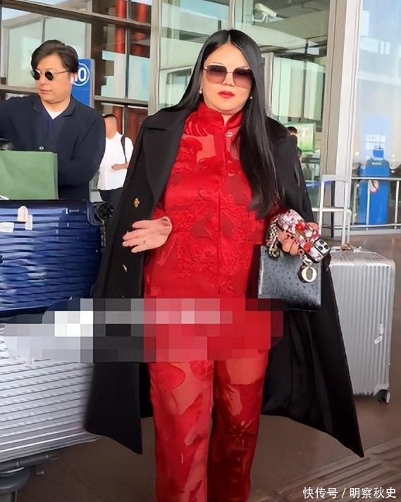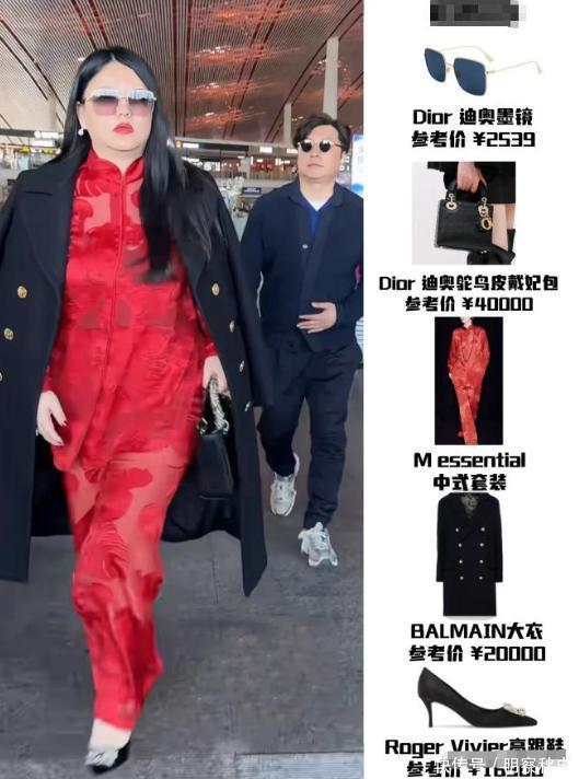 但李湘这一身可就不简单了,光是一件大衣就要两万块,从头到脚没有一件不是奢侈品大牌,这是真把机场当红毯了。